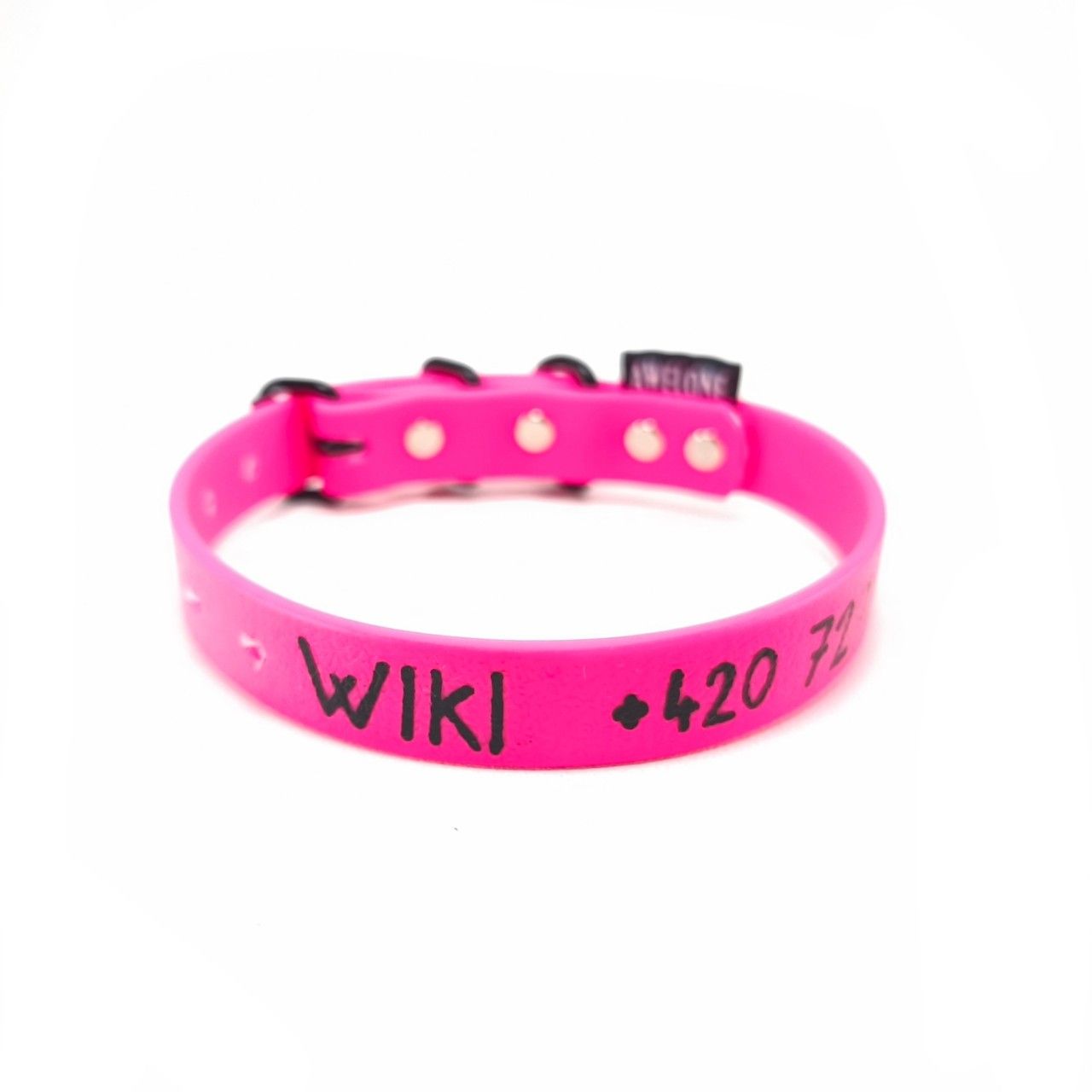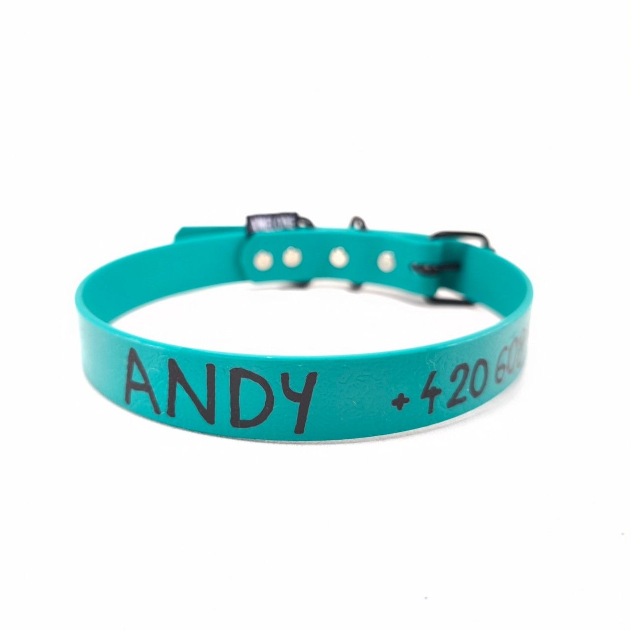 Na obojek Vám můžeme napsat jakýkoliv text nebo přidat i jednduchý obrázek. Jelikož ale vše děláme ručně, mohou se vyskytnout drobné nedokonalosti.