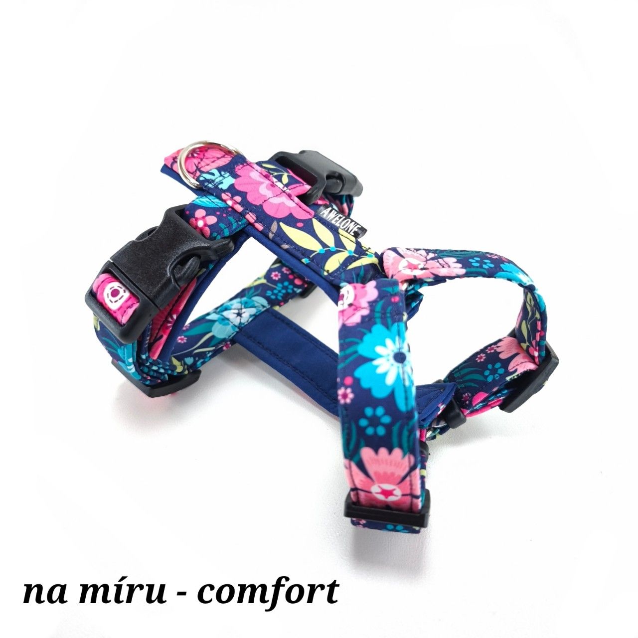 - Podšití postroje na hrudní a břišní části dělá postroj širší a zároveň kryje kovové části a zapínání, což zamezuje zachycení chlupů do postroje, takže je skvělou volbou pro citlivé a dlouhosrsté pejsky a také na dlouhé procházky.