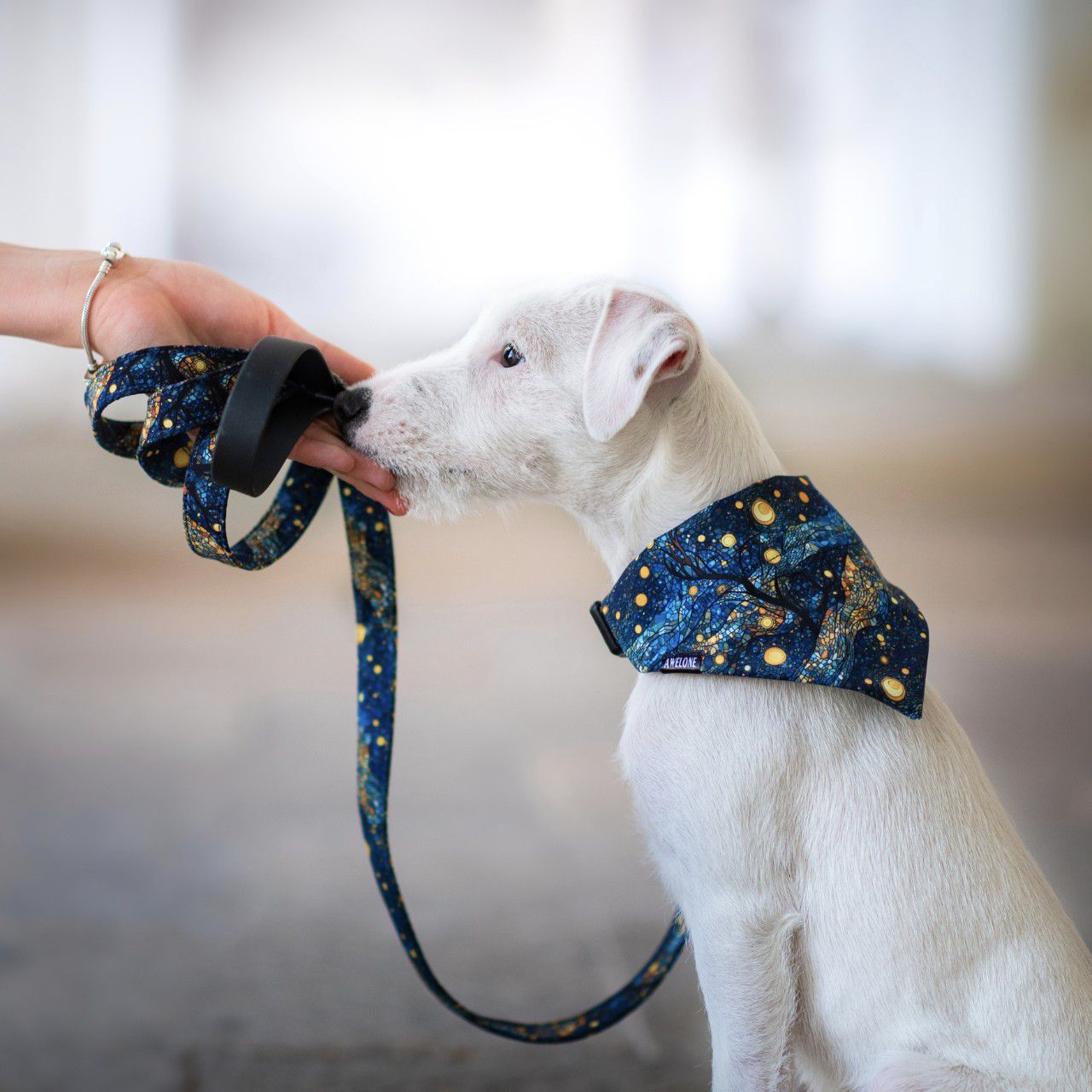 K šátku je také možné dokoupit obojek se stejným vzorem nebo obojek basic.