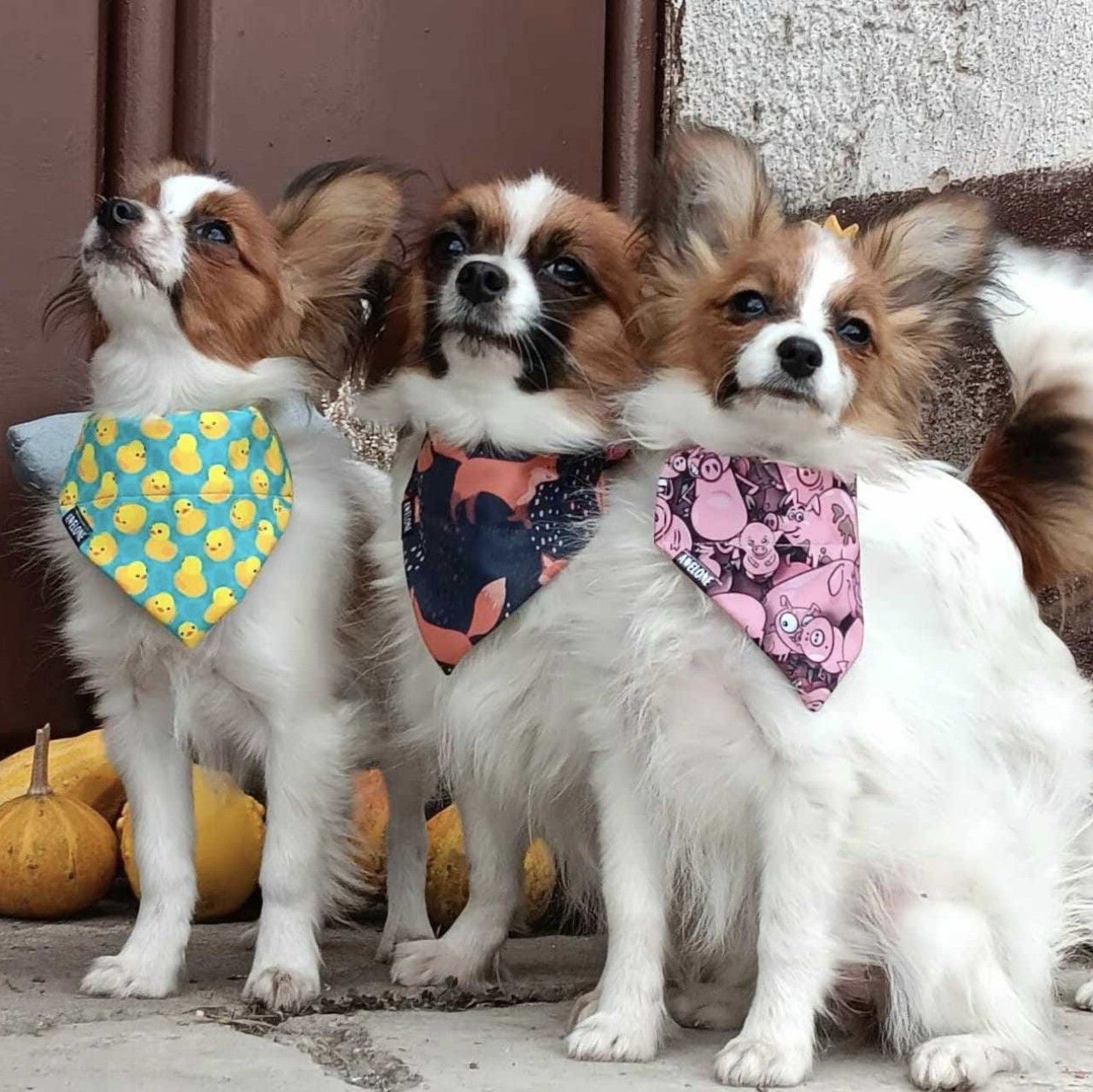 Šátky nabízíme ve 4 velikostech, takže jsou vhodné pro všechny pejsky, od čivavy po vlkodava. Naše šátky mají výhodu v tom, že nemají zapínání, ani je neuvazujete na uzel, ale navlečete je přímo na obojek. Šátek můžete koupit samostatně a nasadit ho na váš obojek (v šířce do 30 mm).